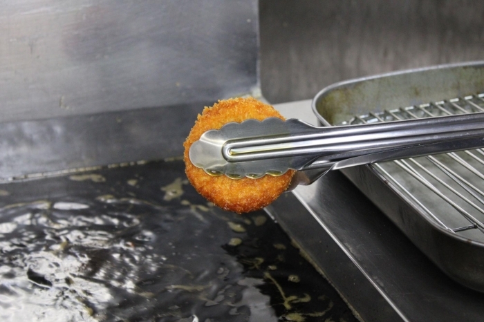 油で揚げる作業は火傷などの危険を防ぐため、支援員さんが担当します。