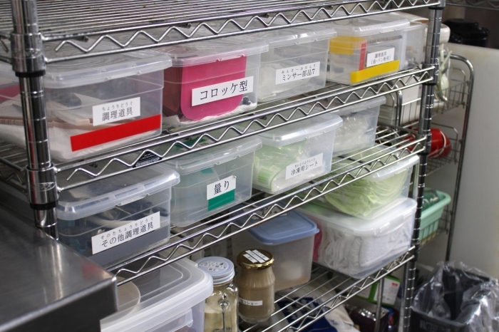 作業スペースでは、すべての道具や材料にシールが貼ってあり、見るだけで何がどこにあるかわかるよう工夫されています。